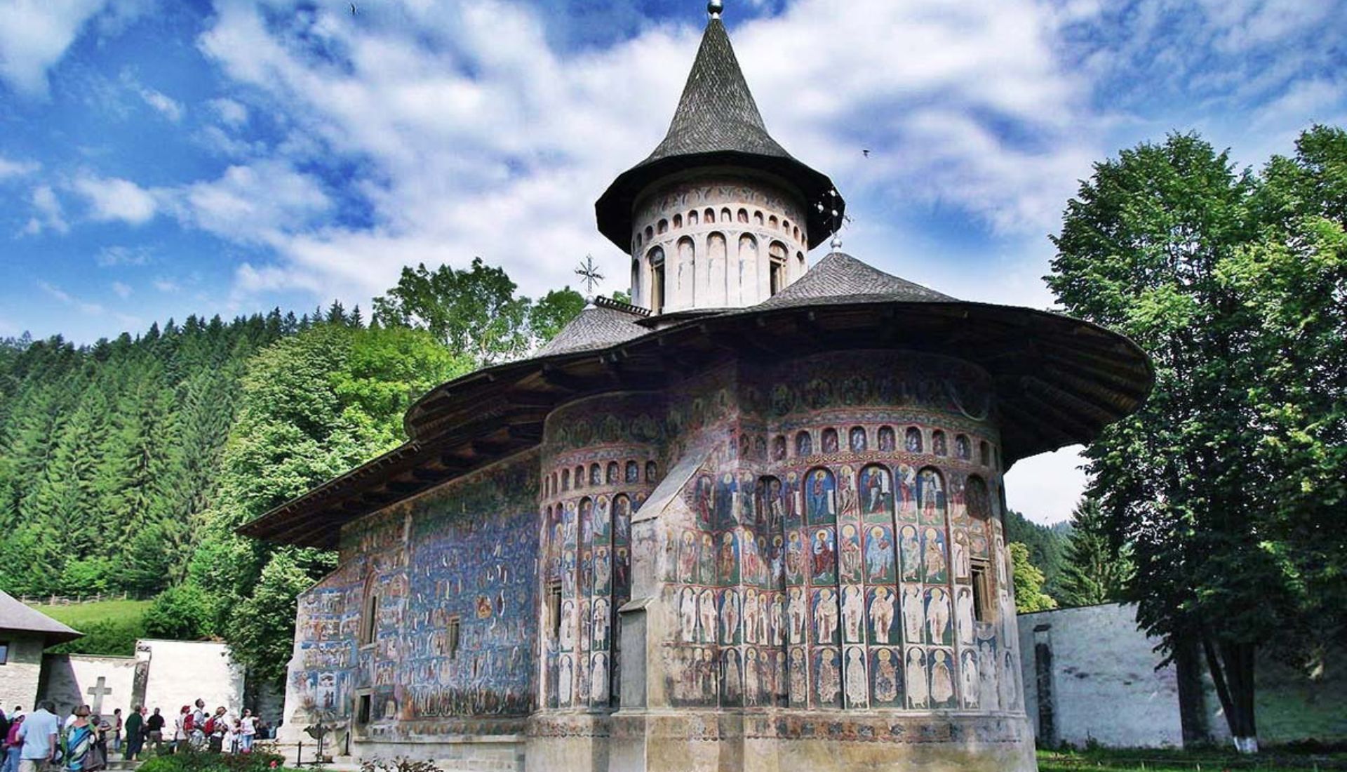 • Frescele exterioare, perfect conservate, înfățișează Judecata de Apoi într-o formă spectaculoasă.